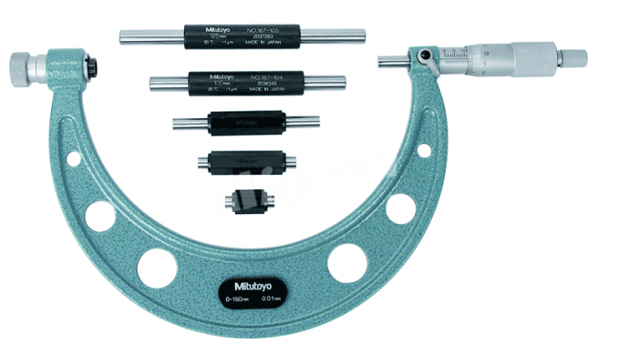 Микрометр гладкий МК- 150 0,01 (0-150) со сменными пятками 104-135A Mitutoyo (артикул 300706)
