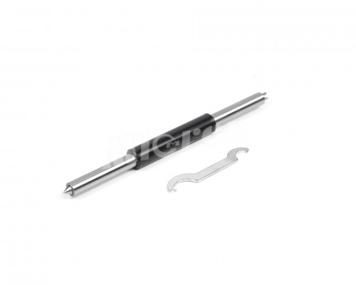 Микрометр со вставками резьбовой типа МВМ предназначен для измерения среднего диаметра метрических, дюймовых и трубных резьб. Применяется в машиностроении, приборостроении и других отраслях промышленности. Устройство пятки и стебля предполагают наличие гнезда, в которое устанавливаются необходимые наконечники из набора. Вставки используются парами, где каждая имеет свой профиль – призматическая полностью повторяет форму гребня резьбы, а коническая – форму канавки. Для дюймовой резьбы угол между поверхностями измерения равен 55°, для метрической – 60°. Количество пар наконечников зависит от комплектации набора. Показания снимаются по шкалам стебля и барабана. Микрометр выполнен из высококачественной закаленной стали, измерительные поверхности покрыты твердосплавным материалом, скоба оснащена теплоизоляционными накладками. Прибор поставляется в жестком пластиковом или деревянном футляре, обеспечивающем безопасное хранение инструмента. В комплекте поставляется установочная мера для инструментов с пределом измерений 25 мм и более.ПОХОЖИЕ ТОВАРЫ