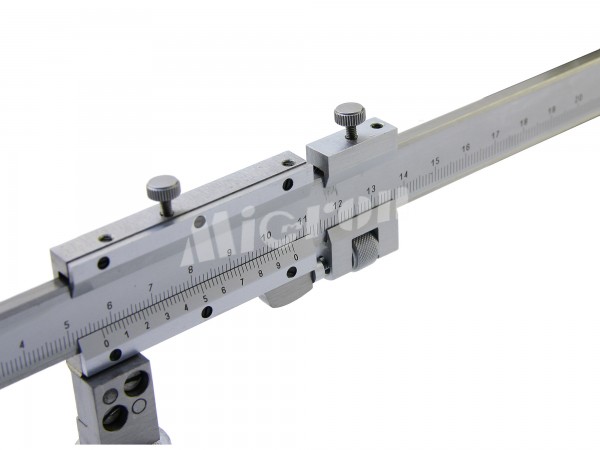 Штангенциркуль для измерения между центрами отверстий отличается специфической формой измерительных губок, которые можно регулироваться по высоте. Благодаря этой особенности прибор может измерять отверстия, расположенные на разных уровнях.