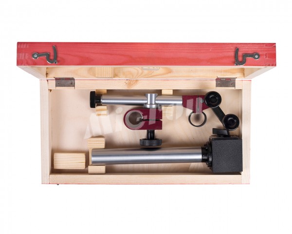 Штатив типа ШМ-IIН предназначен для измерительных головок с ценой деления 0,01 мм. Оснащен подвижным рычагом, который позволяет установить индикатор или головку в необходимое положение как в вертикальной, так и в горизонтальной плоскости. Снабжены устройством для точной установки на размер (для микроподачи). Имеет магнитное основание, которое позволяет устанавливать прибор на наклонных и вертикальных металлических поверхностях.Диаметр отверстия под измерительную головку – 8 мм. Высота колонки – 250 мм (низкая), максимальный вылет измерительной головки 200 мм. Габаритные размеры: 280x122x250 мм.